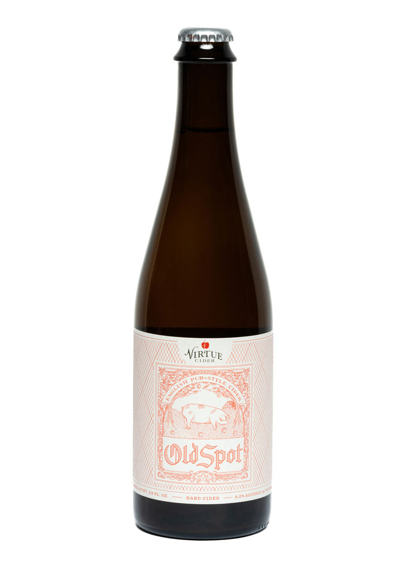 Virtue Cider Farm is home to heritage breed animals, like our Gloucestershire Old Spot pigs. These are traditional orchard pigs who were part of the cycle from soil to cider in England. According to orchard folklore, their spots are said to be bruises caused by apples falling from the trees in the orchards where pigs grazed. Old Spot is a traditional barrel-aged English farmhouse medium cider: not too dry, not too sweet.